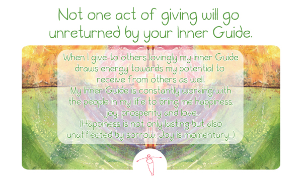 “”When I give to others lovingly my Inner Guide draws energy towards my potential to receive from others as well.