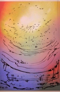 This was tricky for me, because I’ve always felt quite self-conscious about detecting my chakras and meridians. Maybe I haven’t spent enough time on this kind of meditation to be able to distinguish them clearly. Where others describe wheels and flowers and spinning at the main chakras, I tend to get imagery and sensations that feel more like a bustling city, a deep ocean, a placid meadow, or an atomic bomb going off. This morning my left arm’s main meridian felt like a flat wide ribbon of many-colored bands, almost like ribbon-candy, streaming with flashes and currents of life. It was kind of cool, but I was a little distracted by looking for something more conventional.